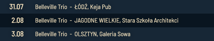 Belleville Trio to młody, szwedzki zespół specjalizujący się w gypsy jazzie. Grupę tworzy trzech przyjaciół i muzyków zafascynowanych brzmieniem gitary Django Reinhardta: